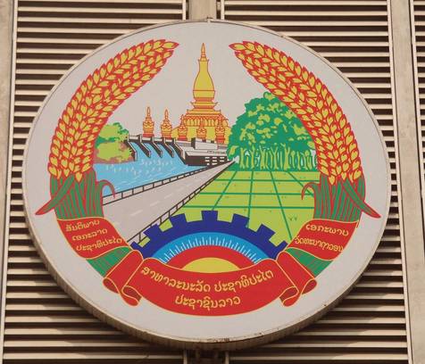 Трохи відпочивши, ми пішли гуляти містом. Цей прапор, гадаю, не потрібно представляти. У В’єнтьяні таких багато. Загалом, як відомо, Лаос — одна із небагатьох країн світу, де біля керма стоїть комуністична партія. Сил іншого політичного спрямування в цій країні немає.