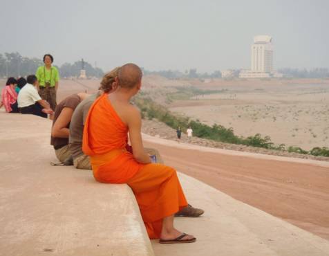 Комуністичний Лаос зустрів нас вельми доброзичливо — одразу намагався ошукати. Річ у тому, що лаоська віза коштує 30 дол., але прикордонники сказали платити в тайських батах, що у доларовому еквіваленті — 43. Ми про таке вже чули, тому спеціально взяли із собою долари й розплатилися ними. Напевно, щоби помститися, прикордонники довго не віддавали документи — обідали, ділилися один з одним горішками, розмовляли та сміялися. Отримавши паспорти із лаоськими візами, ми взяли машину і, нарешті, прибули до столиці — міста В’єнтьян.