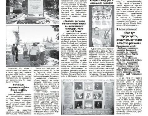 Вранці 4 серпня в селі Старі Шомполи Комінтернівського району Одеської області п'ятеро невідомих розгромили торгову палатку підприємця Володимира Назаренко, який принципово не вступав до Партії регіонів і публічно виступав проти діючої влади. А за тиждень до нападу підприємець звернувся до редакції газети ВО "Свобода", якій розповів про тероризування жителів села з боку Партії регіонів.