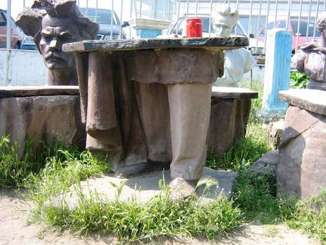 Памятник Марксу и Энгельсу, который стоял когда-то в городском парке, достался Владимиру Николаевичу уже разбитым. Рабочие бросили его там же, где снесли. Уже не подлежавшую реставрации скульптуру коллекционер все равно забрал себе — и дал ей вторую жизнь. Из ног Маркса получились прекрасные ножки для садовой скамейки, а из туловища Энгельса — стол!