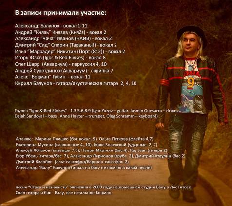 Я давал послушать альбом многим за последние несколько дней. И много отзывов примерно такие: “Неужели Балу остепенился?” Нет, я имею ввиду, что те люди, которые со мной говорили, считают, что тот Балу, который играл в Король и Шут на заре 2000 – х и тот Балу, который сейчас, очень изменился. Ощущение что человек не просто переосмыслил свою жизнь, а даже нашел в ней свою нишу, и активно себя развивает.