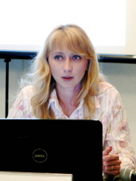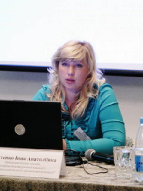 Інна Костенко, начальник відділу заходів з охорони інтелектуальної власності, представила аудиторії тему "Програма охорони прав, пов’язаних з проведенням чемпіонату УЄФА ЄВРО – 2012".