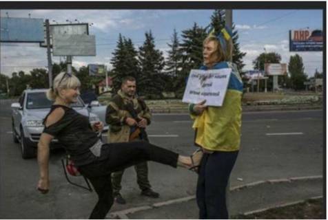 "Из хороших машин выходили молодые красивые ребята. Сначала один фотографировался со мной, потом они менялись. Но мужчины меня не били, а били в основном донецкие женщины. Били с какой-то садистской жестокостью. Одна бабушка била меня палкой, на которую она опиралась при ходьбе - по спине, по плечам и по голове ".