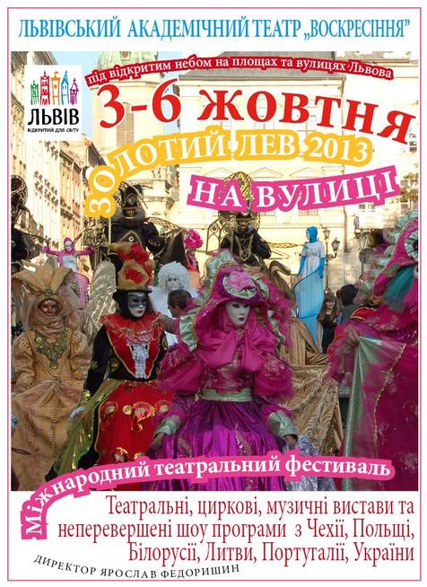 Сьогодні, 3 жовтня у Львові під відкритим небом на площах та вулицях запалив свої величні вогні Міжнародний театральний фестиваль «Золотий Лев». За словами експертів, це єдиний театральний фестиваль, який концентрує в собі всі театральні тенденції сучасного мистецького прогресу.