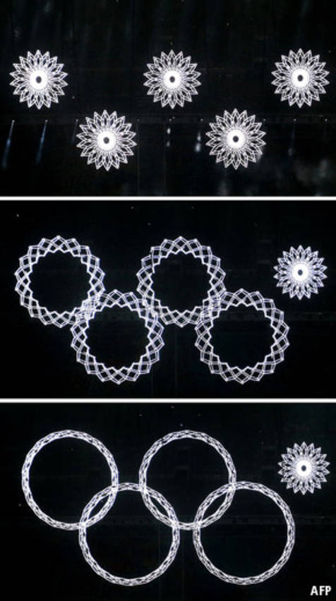 Но вышла заминка: одна из пяти снежинок не развернулась на олимпийском ринге. Реакция государственного телевидения была немедленной и красноречивой: вместо того, чтобы не обращать внимание на ляпсус, трансляция живьем была немедленно заменена на видеозапись с репетиции. Эта подмена реальности только одна из многих, которая придает российским СМИ привкус романа Оруэлла "1984".