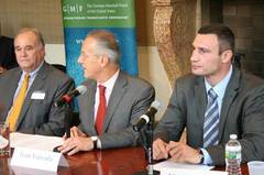 Нагадаємо, що лідер партії «УДАР» В.КЛИЧКО перебуває з чотириденним візитом у Сполучених Штатах Америки. 12 жовтня у Вашингтоні В.КЛИЧКО виступив у Фонді Маршалла США – інституті державної політики, зусилля якого спрямовані на поглиблення взаєморозуміння та співпраці між США і Європою. Також лідер партії «УДАР» виступав у Національному демократичному інституті та Міжнародному республіканському інституті, які представляють зовнішньополітичний курс Демократичної та Республіканської партій США відповідно.