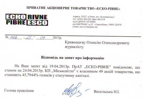 Справа в тому, що як тільки на сайті «ВСЕ» вийшла стаття про те, що серед акціонерів «Еско-Рівне» є приватні особи, близькі до міського голови, відмінили сесію Рівнеради, на якій власне й мало прийматись рішення про передачу акцій енергокомпанії. Офіційне пояснення відміни сесії (в переддень самого сесійного засідання), що ніби то міський голова має їхати на нараду до Києва. Але за законом, за відсутності міського голови сесію проводить секретар міськради, а Андрій Грещук був на місці. Та й міський голова наступного дня теж нікуди не поїхав. Пояснюючи це тим, що нараду відмінили…