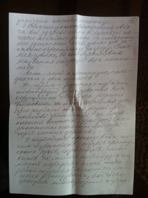Я публічно прошу всіх чесних журналістів, лідерів громадських рухів, службовців, силовиків та інших небайдужих людей передати мені матеріали журналістських та інших розслідувань, які чітко доводять міжнародний характер злочинів правлячої верхівки України.