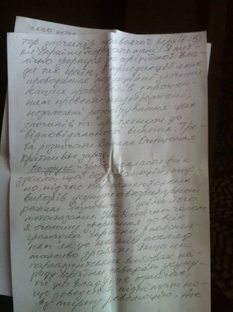 Я припинила їсти 20 квітня тільки з однією метою, щоб привернути увагу демократичного світу до того, що відбувається в центрі Європи, в країні під назвою Україна. І питання не в долі сучасних українських політв’язнів; ми готові стійко та гідно проходити свій шлях, який би він не був.
