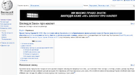 Нагадаємо, що 4 жовтня 2011 року італійська Вікіпедія оголосила страйк проти спроби італійського парламенту ухвалити законопроект «DDL intercettazioni», який містив норму щодо зобов’язання інтернет-сайтів видаляти інформацію, яка на думку тієї чи тієї особи не відповідає дійсності. 18 січня 2012 року до подібної акції вдалися редактори англомовного розділу Вікіпедії проти прийняття Палатою представників США „Stop Online Piracy Act” (SOPA; Закон «Про боротьбу з інтернет-піратством») та Сенатом США „PROTECT IP Act” (PIPA; Закон «Про запобігання реальним інтернет-загрозам для творчості та крадіжки інтелектуальної власності»), якими пропонувалося закривати сайти зі змістом, який порушує авторські права правовласників або поширює інформацію без їх згоди, та притягати до кримінальної відповідальності власників таких сайтів. 10 липня 2012 року страйк оголосила російська Вікіпедія проти законопроекту № 89417-6, яким пропонувалося внести зміни до Федерального Закону «Про Інформацію» та створити список заборонених сайтів та ІР-адрес з подальшою їх фільтрацією.