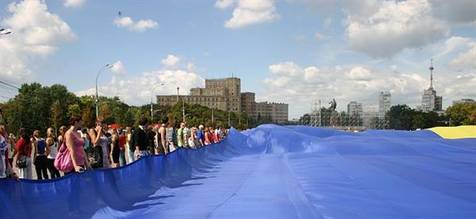 У Харкові під час акції «Рідний прапор нас єднає», яку проводила Українська народна партіія, пошкоджено найбільший в Україні державний стяг.