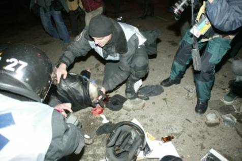 Під роздачу і попали журналісти. Стаса Кухарчука із телеканалу "Інтер" били незважаючи на журналістське посвідчення. Били не раз і не два. Кожен пробігаючий поряд бив. За колегу заступився оператор телеканалу "Вікка" Сергій Єфімов, який кинувся витягувати Стаса з побоїща - за це йому розбили камеру.