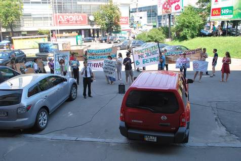 Сьогодні на Львівській площі під стінами Будинку художника відбулася акція протесту проти незаконного будівництва житлового комплексу «Лісова палітра» на вул. Сошенка, 33. 25-поверхові будинки для продажу квартир намагається побудувати керівництво Національної спілки художників.